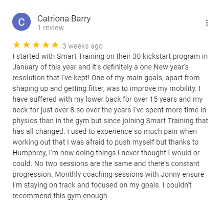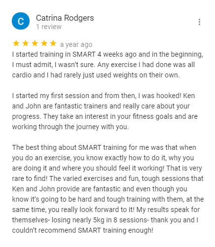 *Well, what a difference, after two months of hard work with SMART Training. The trainers are so helpful, motivating and listen to every question you ask! I feel stronger, healthier and so much better! Thanks guys!…Read More